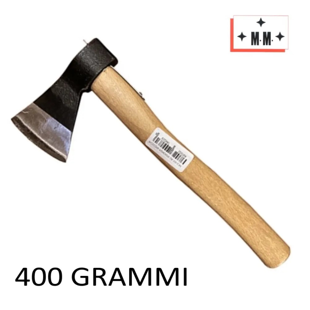 Accetta "Piemonte" da 400 Grammi , in acciaio forgiato con lama temperata e manico in legno .
