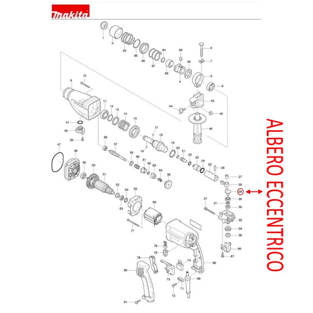 Albero Eccentrico MAKITA , di ricambio per i seguenti modelli di Tassellatori : HR2410 - HR2430 - HR2431