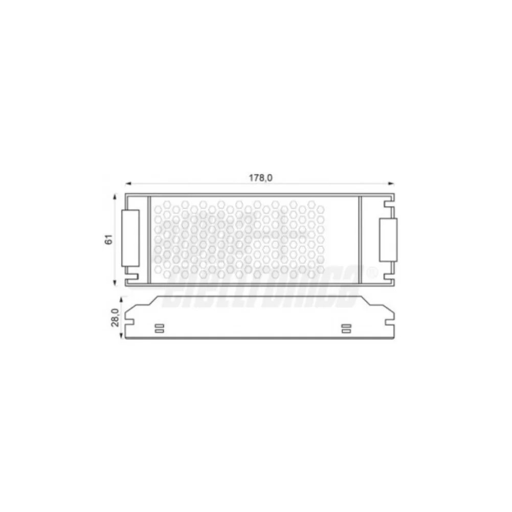 Alimentatore per led da quadro in metallo grigliato (modello slim) con connessioni a morsetti a vite.