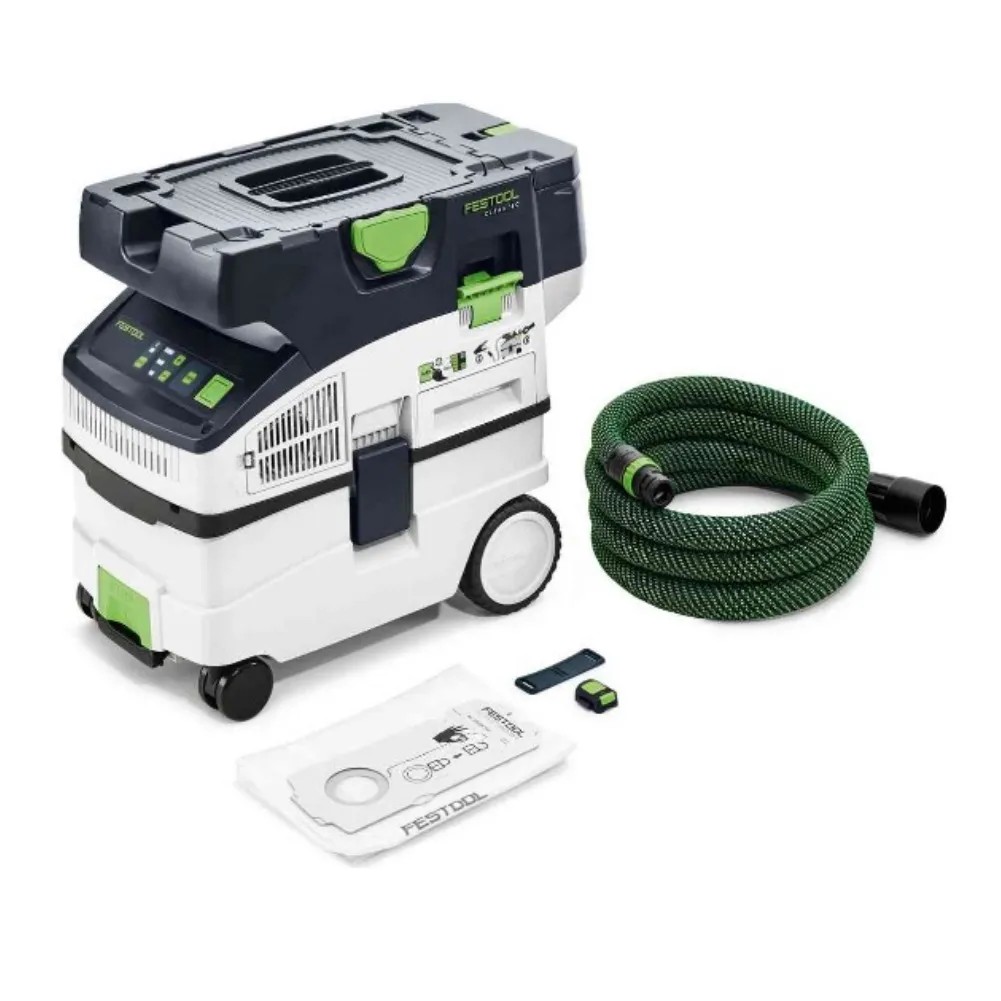 L'aspiratore a batteria compatto CTLC MIDI ama la polvere ed è perfettamente abbinato ai vostri utensili a batteria Festool.