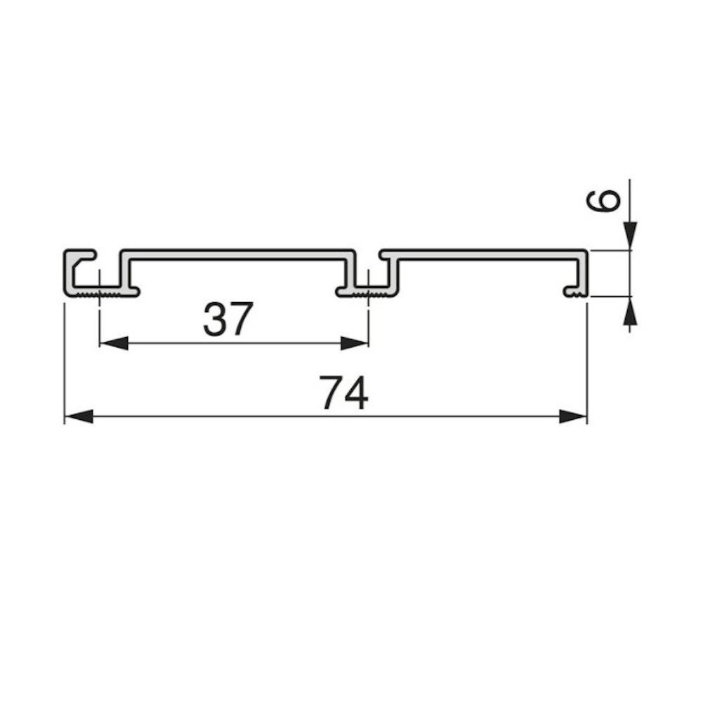 Binario inferiore a canale di larghezza mm.74 e di lunghezza mt. 3,90 per sistema di scorrimento dell'armadio Placard74.