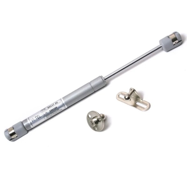 Braccetto a gas per apertura anta mobile verso l'alto. Modello specifico per ante e fianchi in legno, portata anta kg.15. Dimensioni: lunghezza totale mm.275(non compresso).