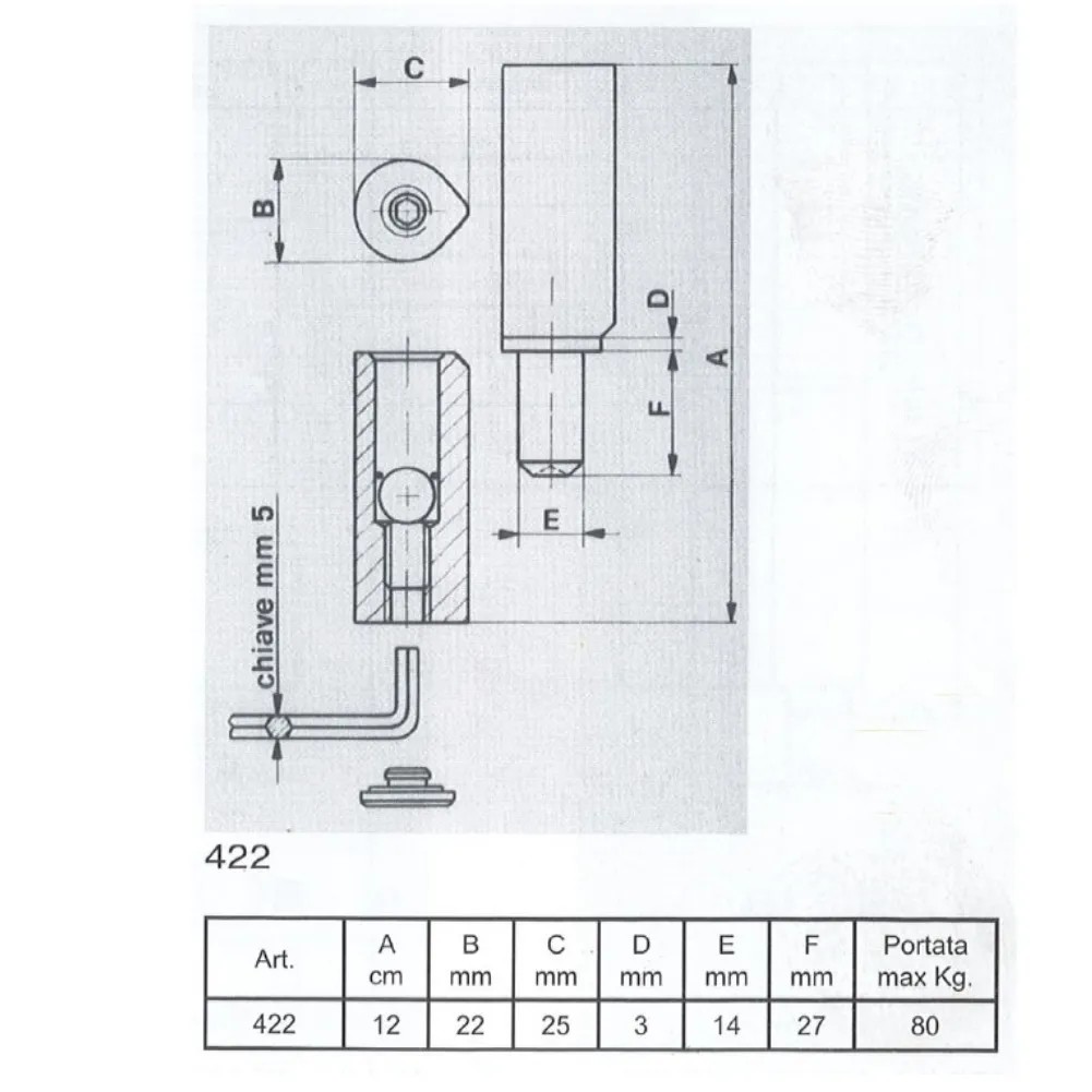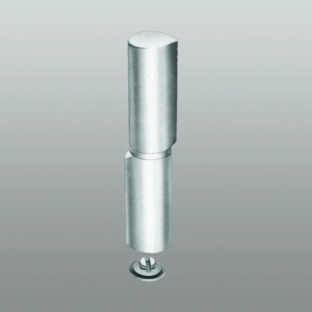 Cerniera registrabile da saldare,altezza 12 cm,per porte pesanti o blindate,a sezione eccentrica,a sfilare,in acciaio lucido,perno e rondella in ottone,sfera in acciaio al cromo,grano di registrazione in acciaio,tappo coprifilettoin politene.