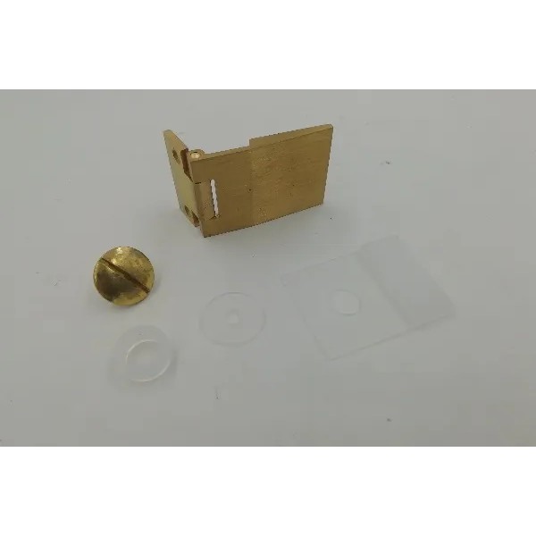 Cerniera a vista per cristalli in ottone satinato, dimensione mm.28x40(HxL).