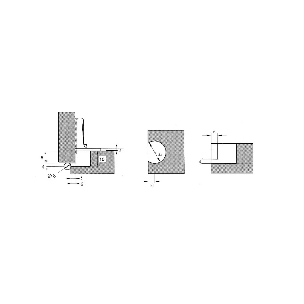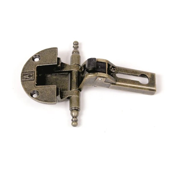 Cerniera per ante mobile in battuta con foro scodellino diametro mm.35, profondita' mm.10. Collo 00. Finitura zama bronzata. Basetta TLA012030 da ordinare a parte.