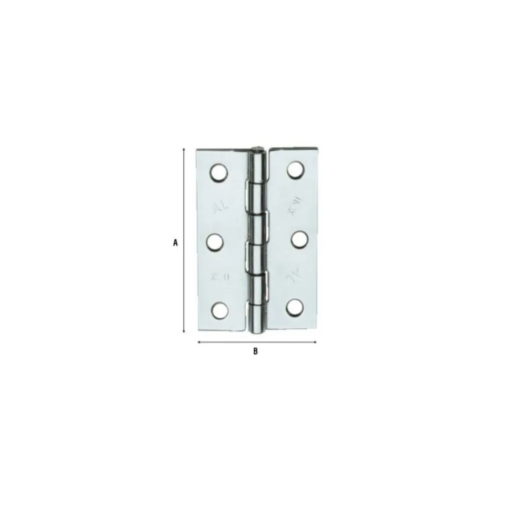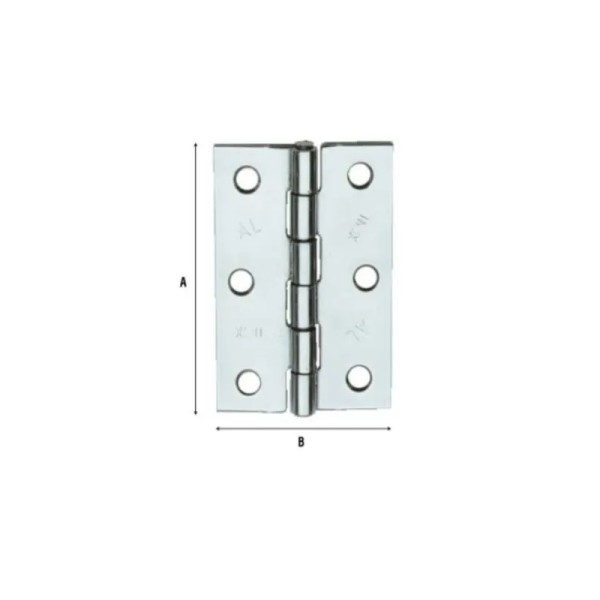 Cerniera mezze larga pesante perno fisso in acciaio inox disponibile nelle misure: mm. 50x40x1,5 - mm.75x51x1.5 - mm.87x58x1.5.