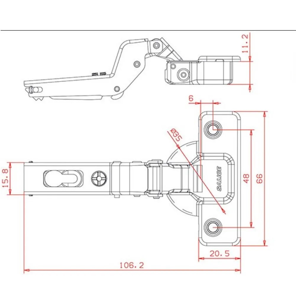 Cerniera SALICE serie 200 con molla a chiusura automatica. Ala e scatolina in acciaio nichelato opaco; dimensione scatolina d.35 mm. e profondita' 11 mm. Regolazione laterale compensata da -1.5 a +4.5 mm. Regolazione verticale +- 2 mm. Regolazione frontale da -0.5 a +2.8 mm. con basi Domi. Cerniera per ante di spessore minimo 16 mm. e massimo 26 mm. Possibilita' di foratura della'anta da 3 a 6 mm. Apertura 110'. Versione a collo 17. BASETTA PER IL FISSAGGIO DA ORDINARE A PARTE.