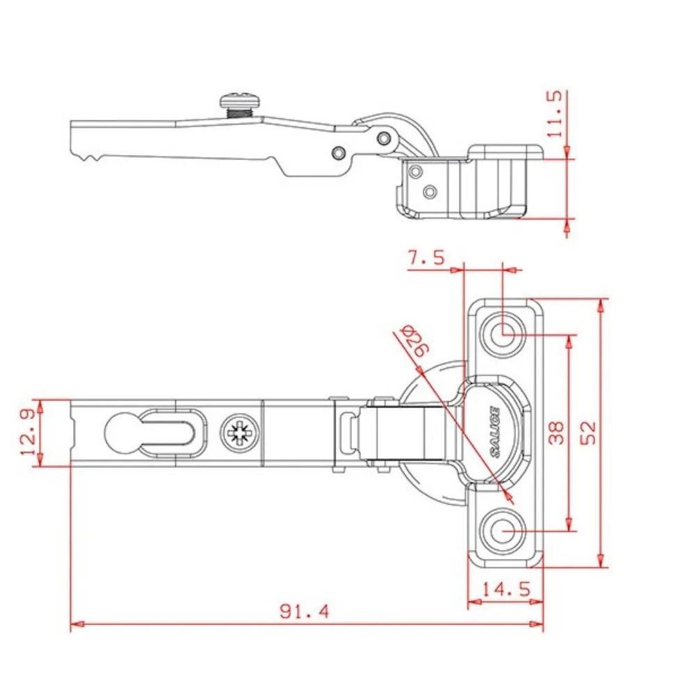 Cerniera SALICE serie 600 MINI con molla a chiusura automatica. Ala e scatolina in acciaio nichelato opaco; dimensione scatolina d.26 mm. e profondita' 11.5 mm. Regolazione laterale compensata da -1.5 a +4.5 mm. Regolazione verticale +- 2 mm. Non adatta al montaggio di basi Domi ad innesto rapido. Cerniera per ante di spessore minimo 16 mm. e massimo 23 mm. Possibilita' di foratura della'anta da 3 a 8 mm. Apertura 94'. Versione a collo 0. BASETTA PER IL FISSAGGIO DA ORDINARE A PARTE.
