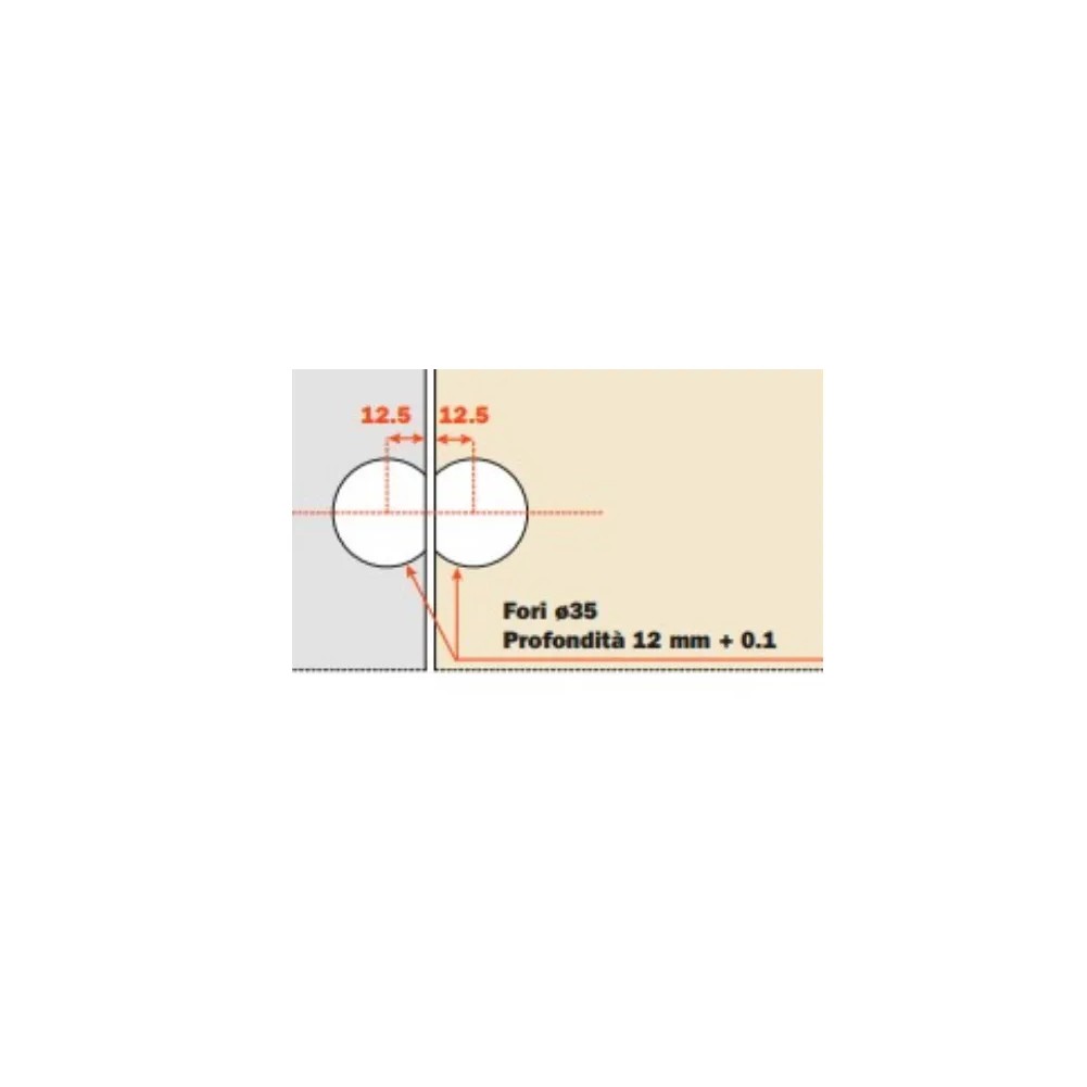 Cerniera da incassare a doppio foro di diamentro mm.35 e di profondita' mm.12. In dotazione le viti euro per il fissaggio e la copertura in plastica bianco.