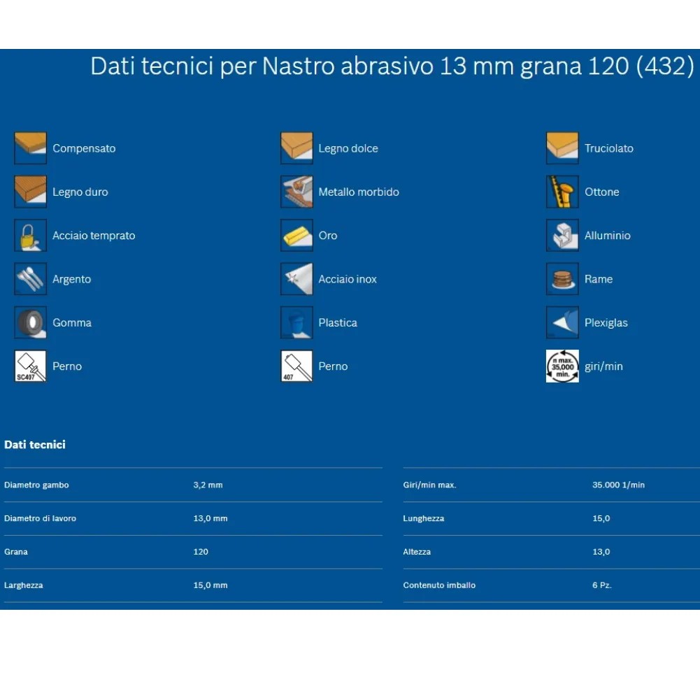Cilindro DREMEL abrasivo Grana 120 , utilizzato principalmente per rimuovere la finitura e il materiale come legno , plastica , fibra di vetro , alluminio , Pietra , Ottone , Ceramica ; è possibile anche utilizzarli per sagomare e lisciare (grossolanamente) o per rimuovere la ruggine dal metallo .