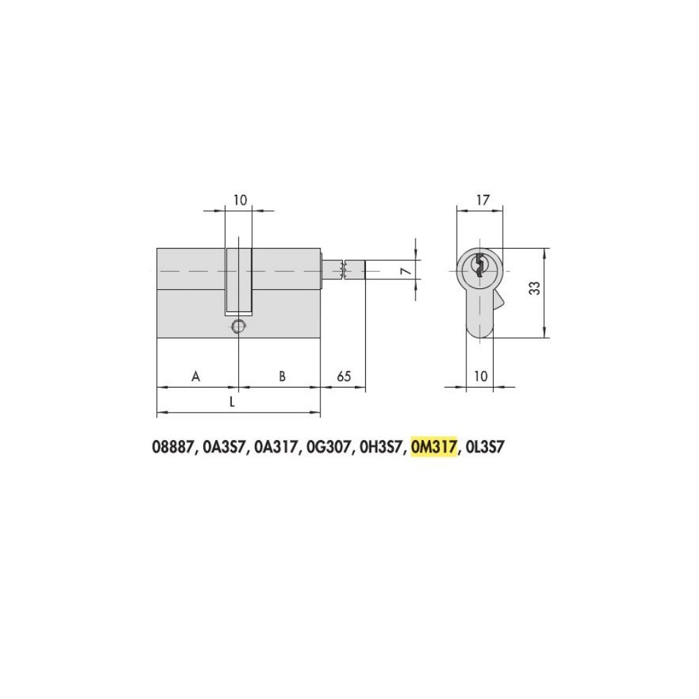 Cilindro CISA a profilo europeo ASTRAL TEKNO iNOVATE corredato di 3 chiavi duplicabili solo mediante la security card (duplicazione chiave protetta)