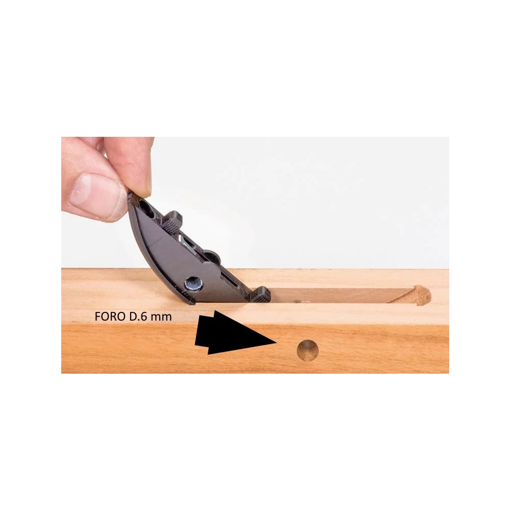 L'ancoraggio P a filo consente un incastro rapidissimo e resistente nel pezzo senza utensili. Clamex P non richiede colla o viti e garantisce numerosi vantaggi nel processo di realizzazione e differenziazione dei mobili. Consente quindi di collegare in modo permanente o temporaneo mobili con giunzioni angolari. I piccoli fori da 6 mm per la chiave esagonale caratterizzano la ferramenta dei mobili e distinguono Clamex P dalla normale ferramenta per mobili