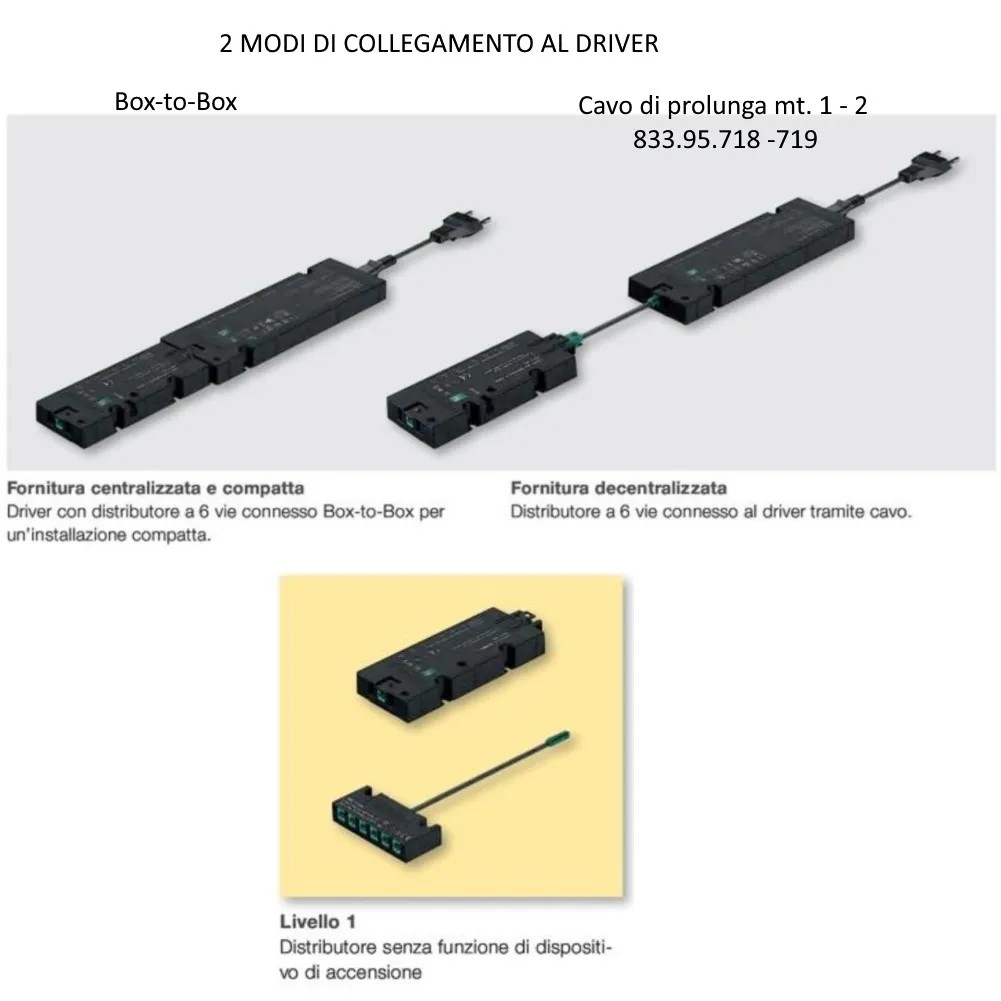 Il collegamento del distributore al driver può essere effettuato con giunzione a innesto Box-to-Box o con un cavo di prolunga.