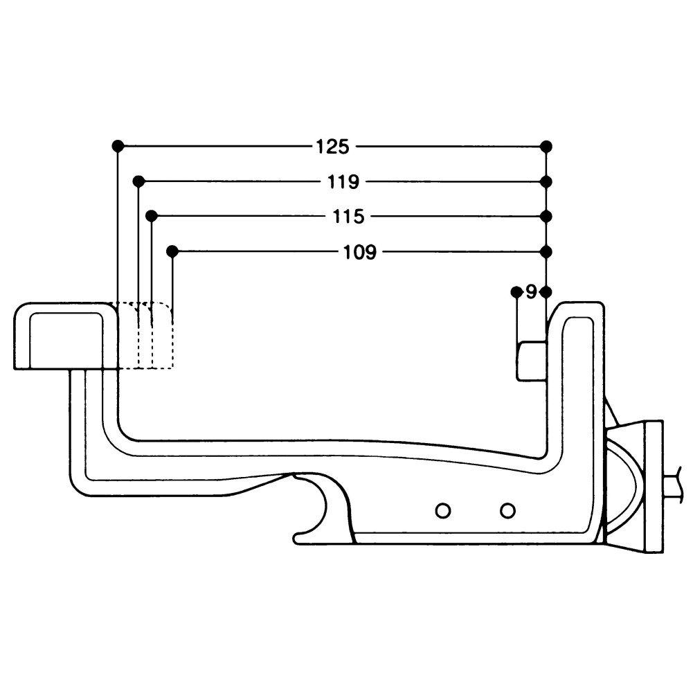 Fermapersiana automatico in plastica tipo lungo con arresto regolabile (spessore mm.109-125), con fissaggio a vite per tassello.