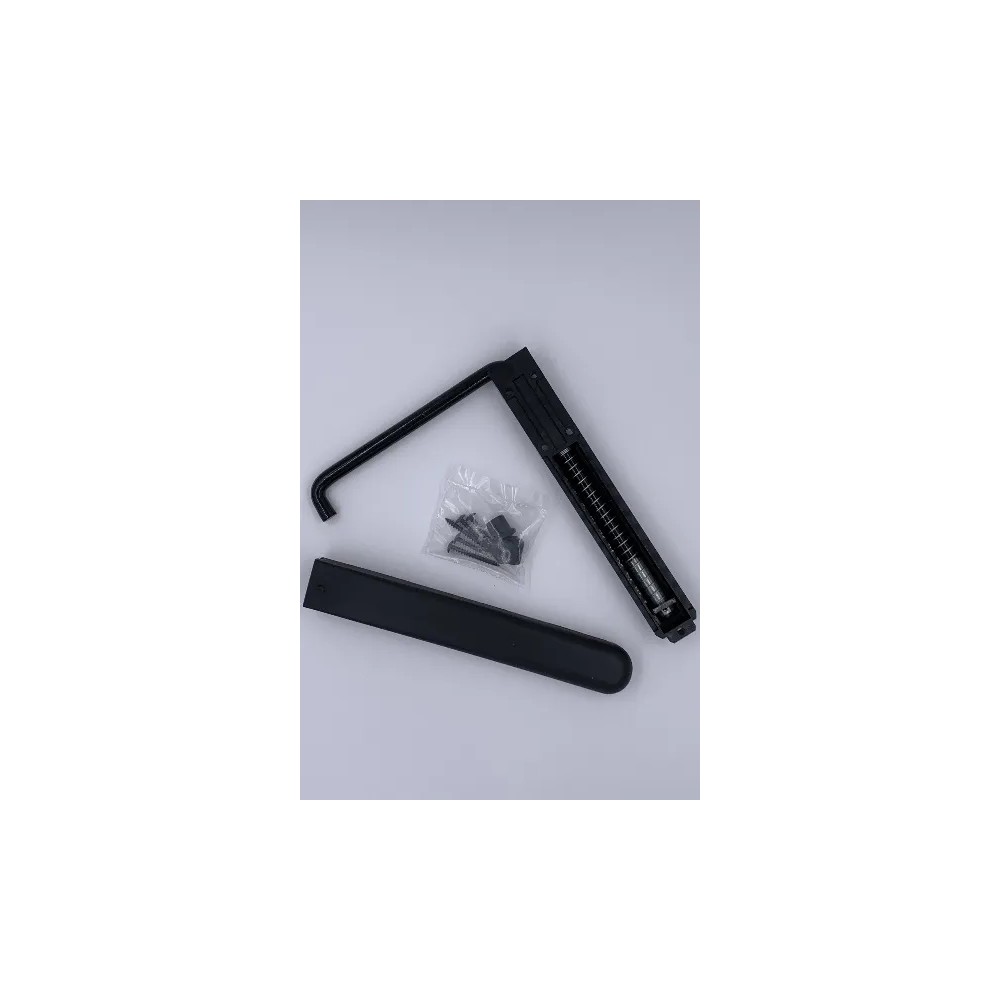 Fermapersiana TORBEL a molla reversibile ambidestro, carter in materiale plastico nero con viti a scomparsa e asta metallica zincata in verniciatura nera. Dimensioni scatola mm. 250x38x22 h. Collo asta mm.180.