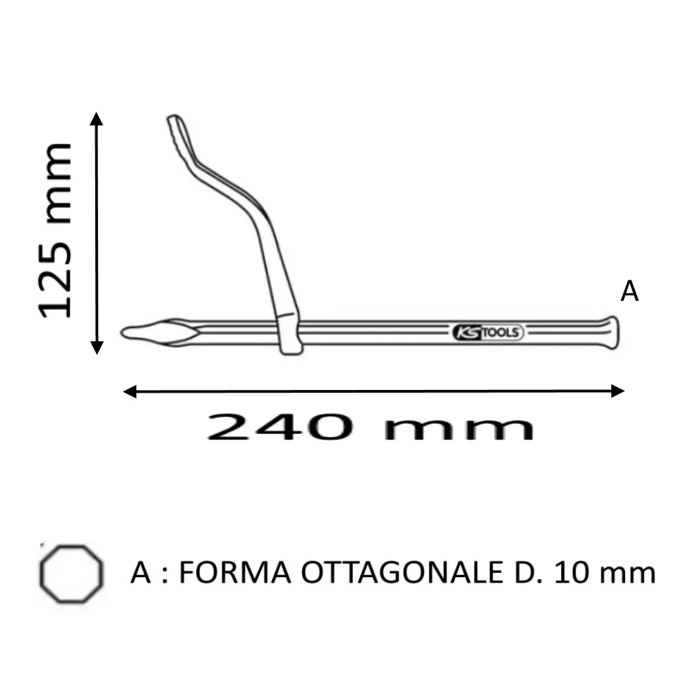 Chiodo fermarighe non riaffilabile con forma ottagonale diametro 10 mm per una lunghezza totale di 240 mm .