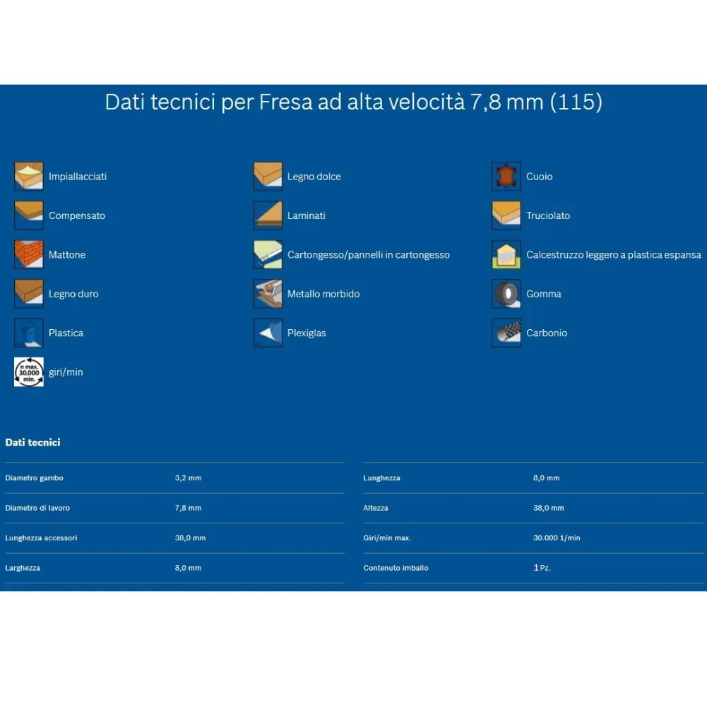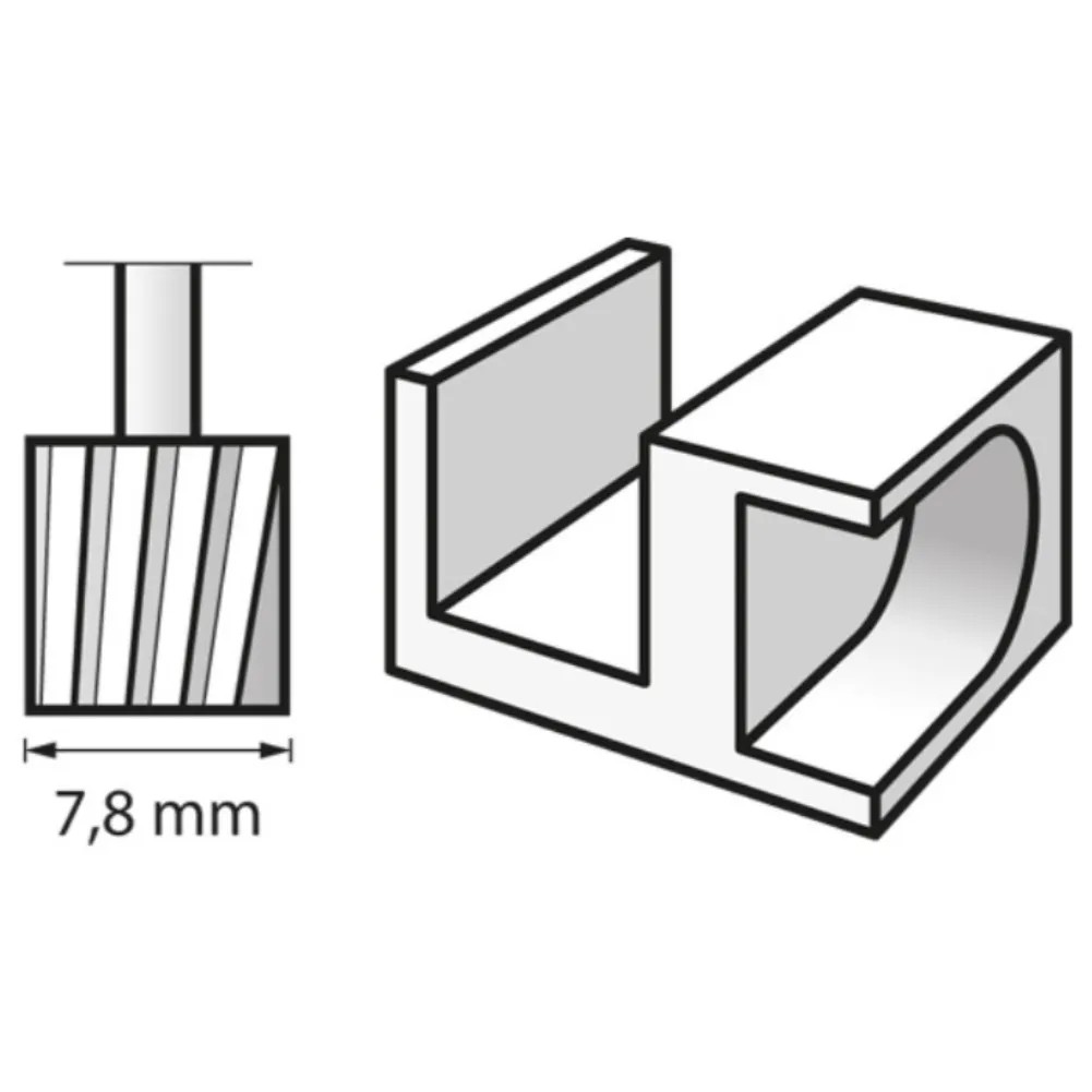 Fresa DREMEL ad alta velocità con testa Cilindrica di diametro 7.8 mm , ideali per la rimozione del materiale in applicazioni come sagomatura , intaglio , incisione , svuotamento , esecuzione di asole , stozzatura , intarsio , esecuzione di fori conici o fresatura a mano libera .