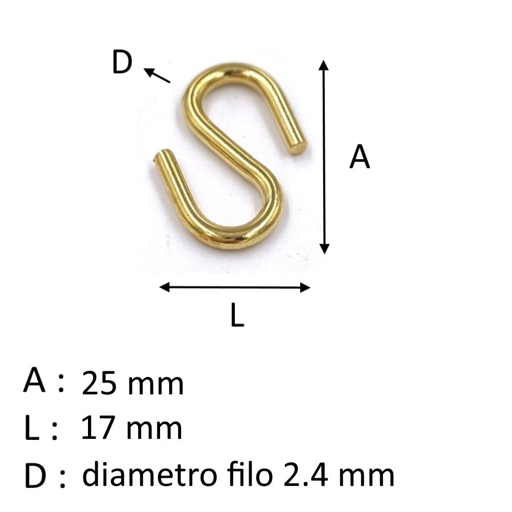 Ganci MANZONI " Art.302 " ad S , finitura Ottonato , utilizzati principalmentee per appendere quadri a parete utilizando la catena genovese ma anche utilizzati per appenderia varia o giunzioni fra catene