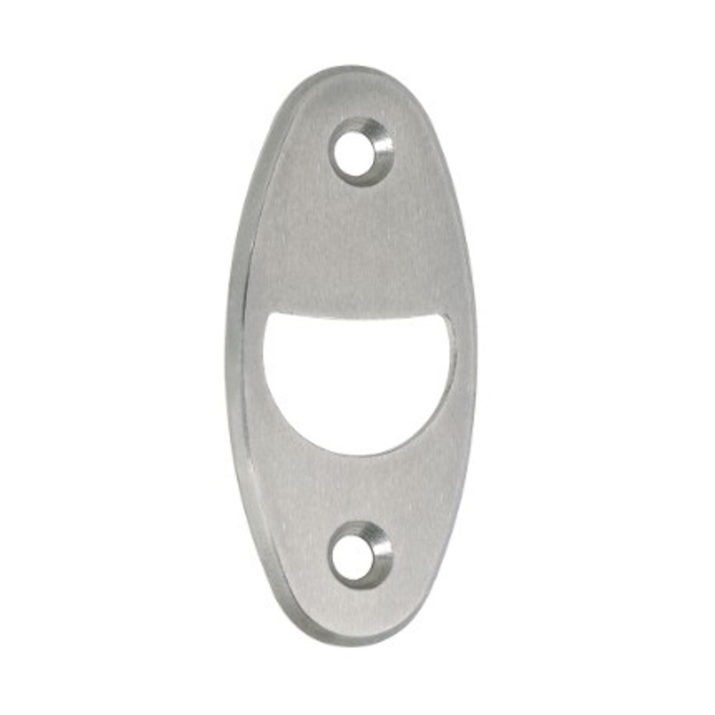 Incontro per serratura AGB mod. SCIVOLA T e SCIVOLA TRE in acciaio cromato opaco. Dimensioni esterne mm.65x28, foro interno diametro 23 mm.