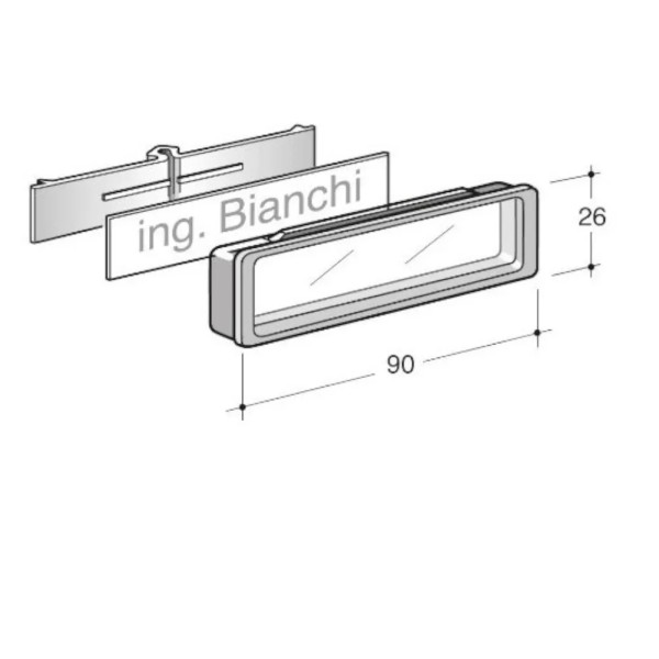 Kit portanome composto da cornice in ABS nero, vetrino trasparente, sostegno etichetta (80x16mm), targhetta PVC bicolor B/N (84x17mm) e targhetta portanome. Ricambio per cassette SC CLASSIC.