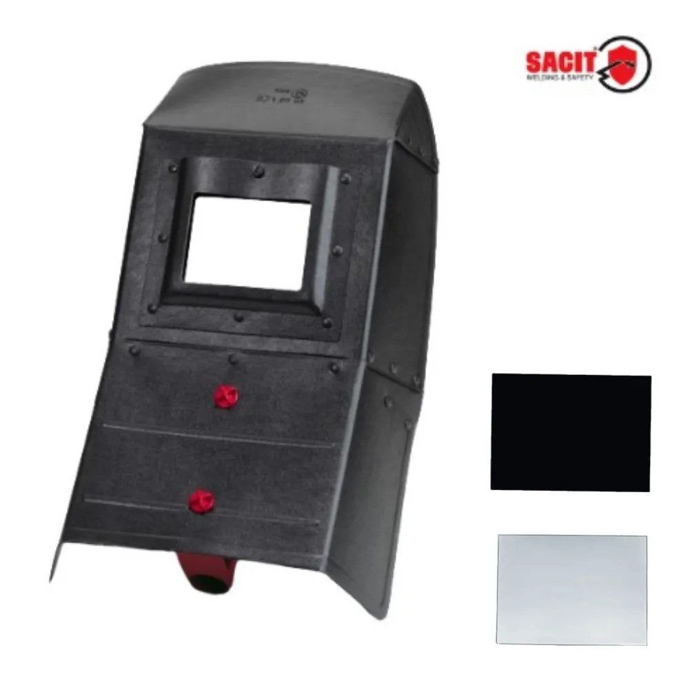Maschera a saldare SACIT modello Ecoline , in fibre di cellulosa di colore nero .