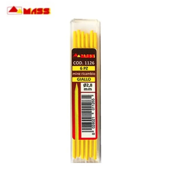 Mine Mass universali Gialle con diametro 2.8 mm e lunghezza 120 mm , di ricambio per matite automatiche .