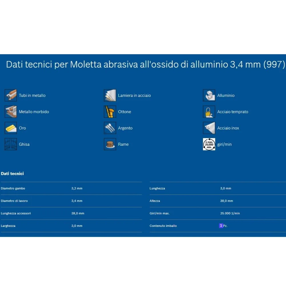 Diametro di lavoro 3.4 mm