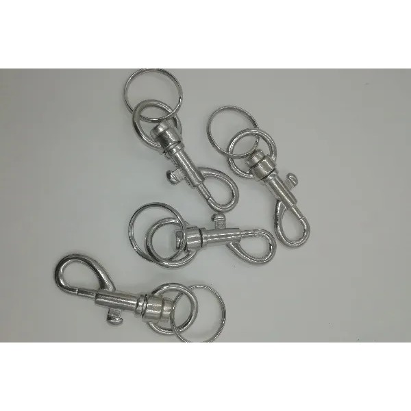 Moschettone portachiavi nichelato piccolo mm.60 con anello diametro mm.25.