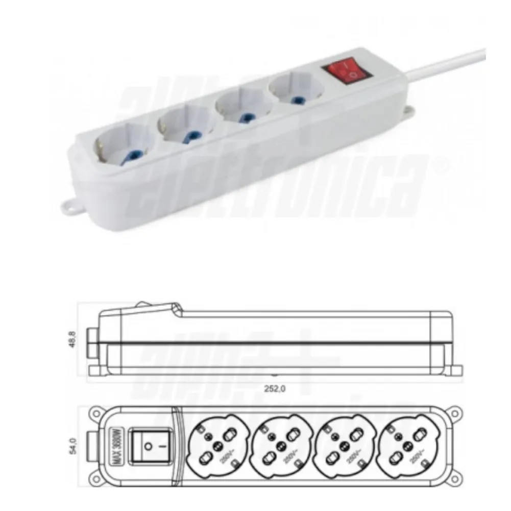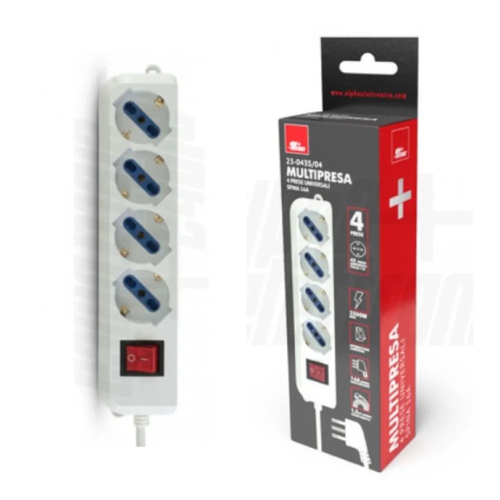 Multipresa con 4 prese universali Italia P40 - con Interruttore - BIANCA