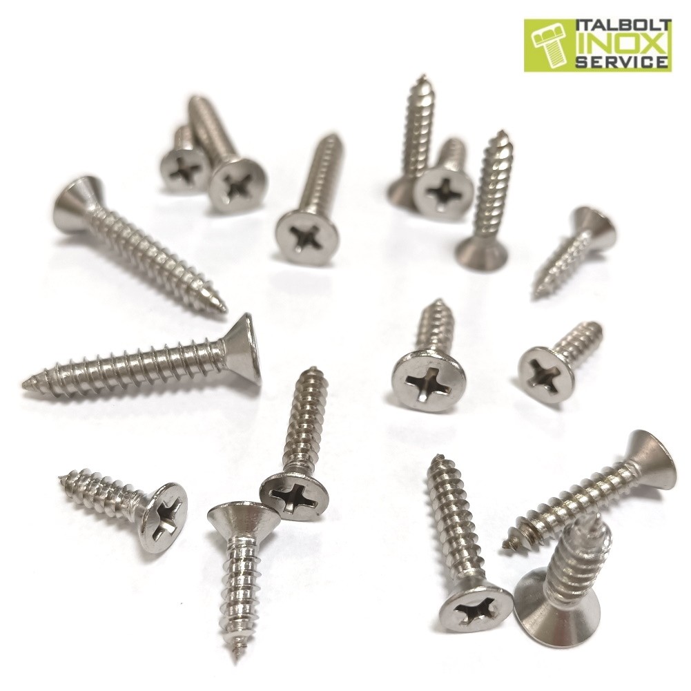 Vite ITALBOLT autofilettante per ferro , testa svasata piana a croce , inserto Phillips , in acciaio inox A2 DIN 7982