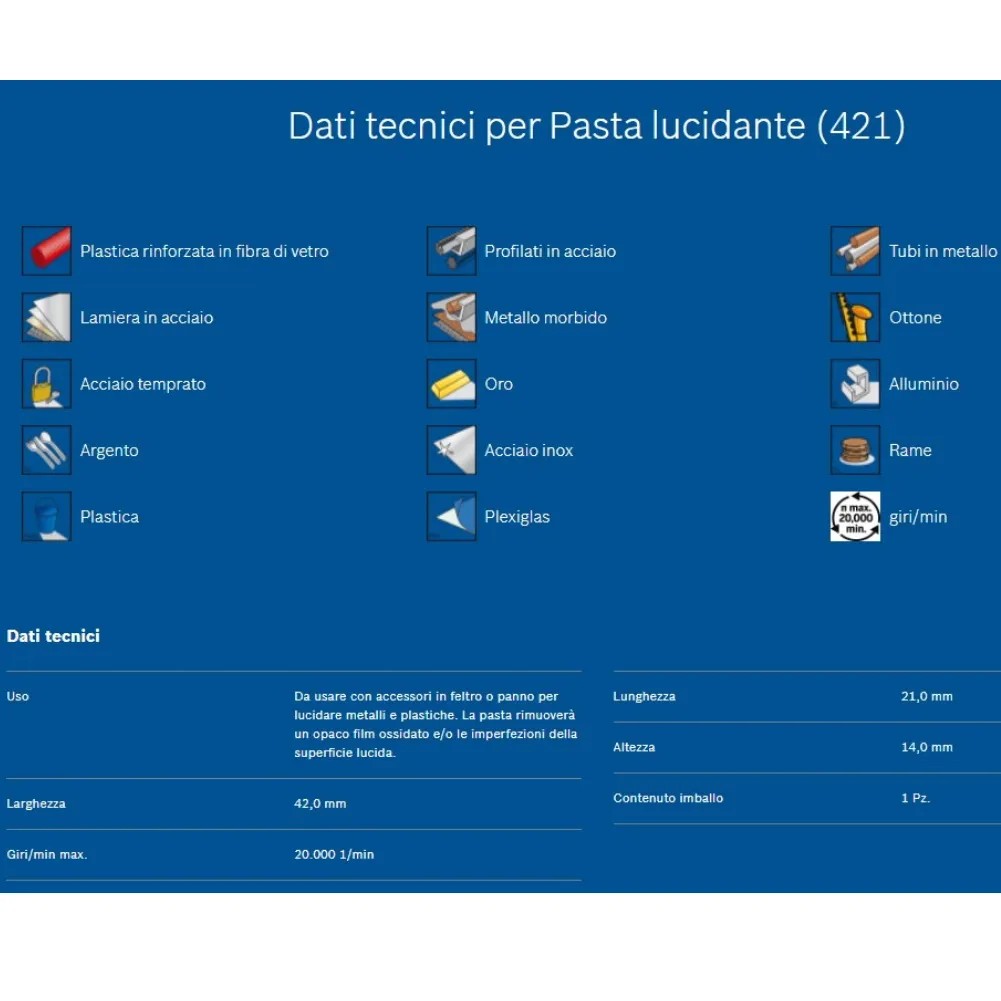Pasta DREMEL Lucidante , da utilizzare con i dischi e feltri per ottendere una Lucidatura perfetta .