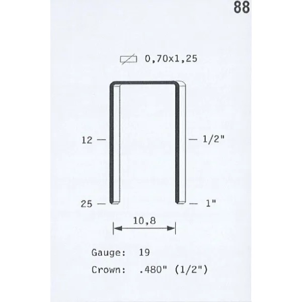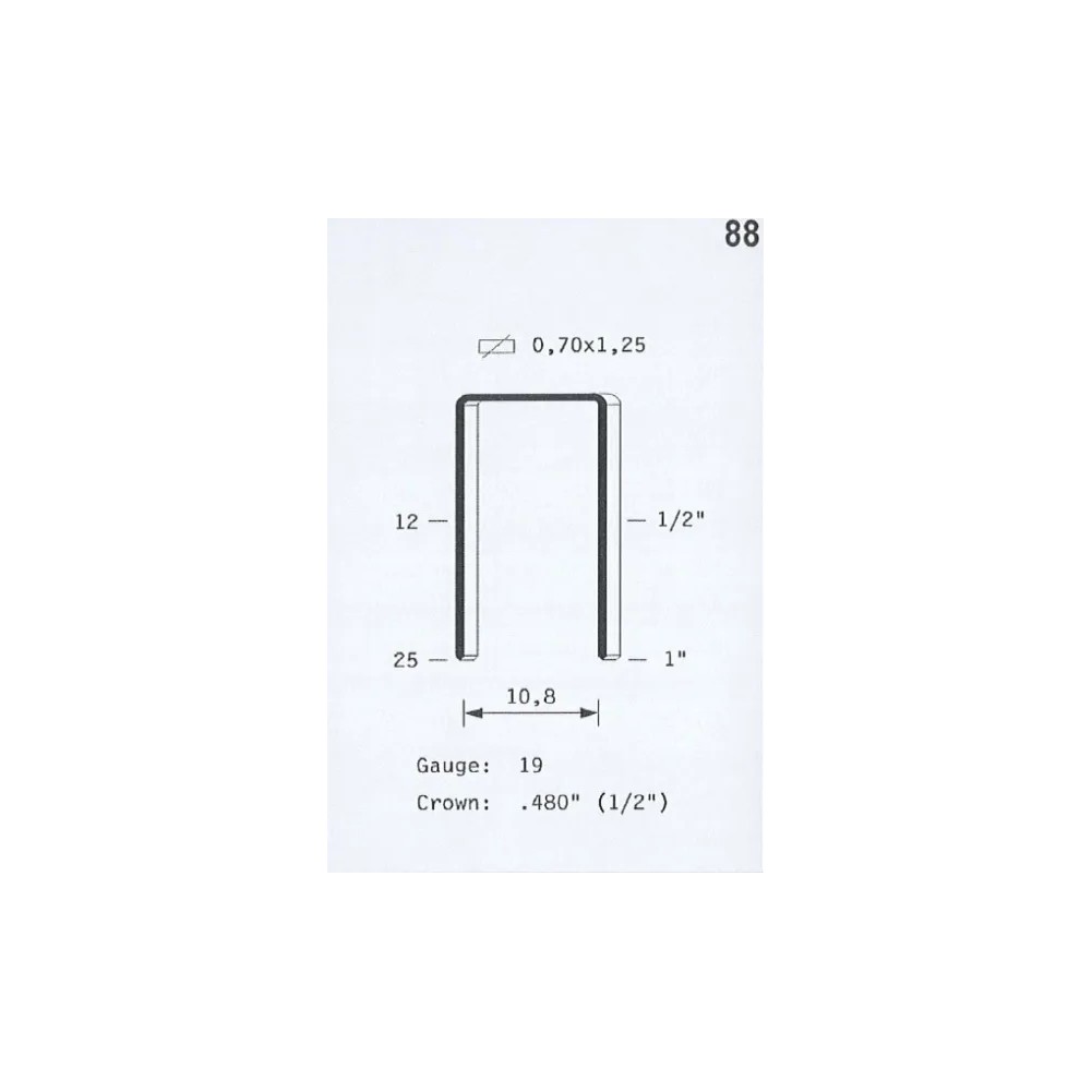 Graffe leggere STANLEY BOSTICH serie 88 finitura zincato sezione rettangolare 0,70 X 1,25 mm. interasse 10,8 mm. Disponibile in lunghezza da 16 mm.