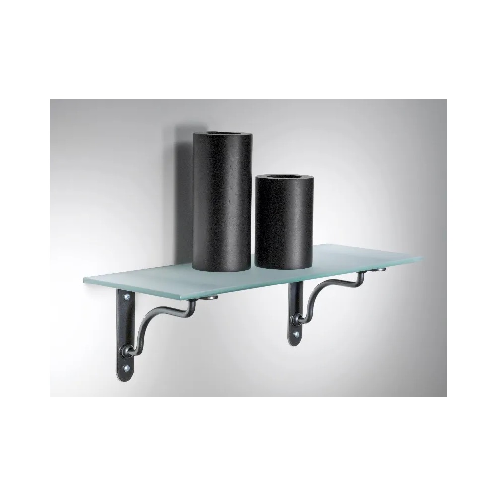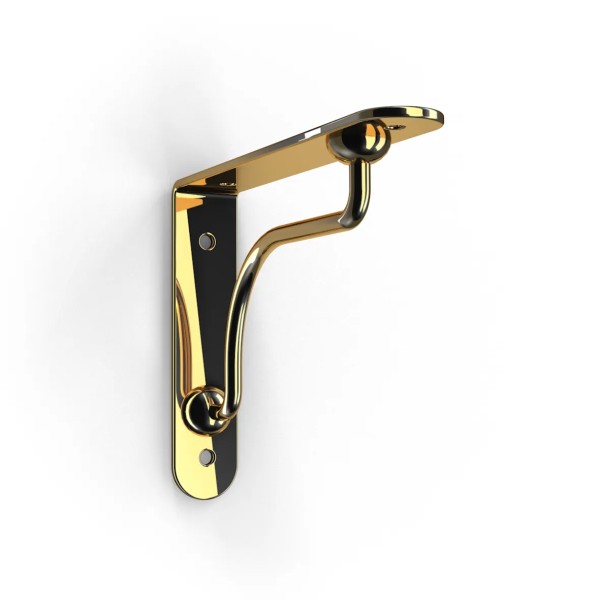 Reggimensola in metallo per mensola in legno. Dimensioni mm.230x180x30.Finitura ottone lucido. La portata di kg.40 e' calcolata sulla coppia di mensole.