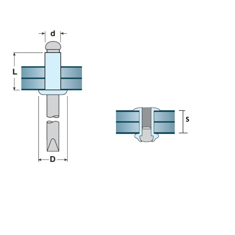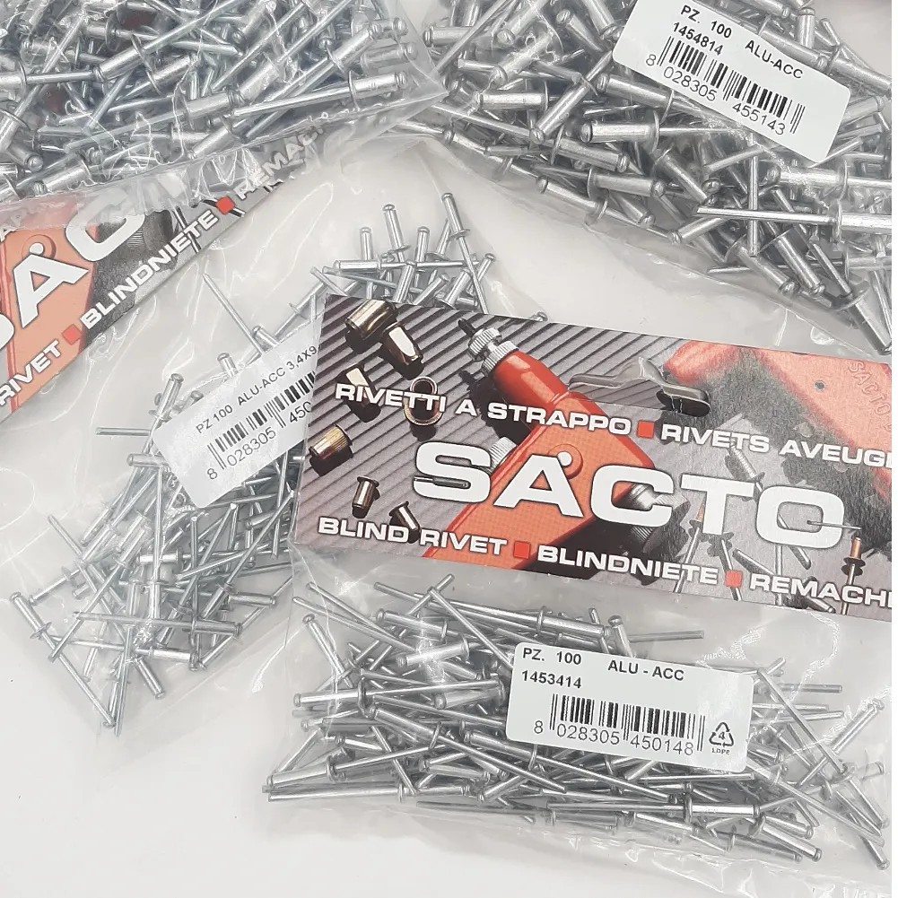 Rivetti SACTO in Alluminio , venduti in Blister da 100 Pezzi