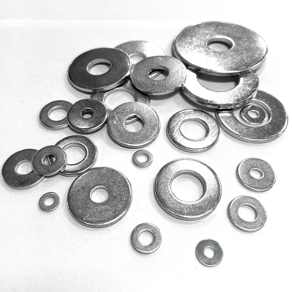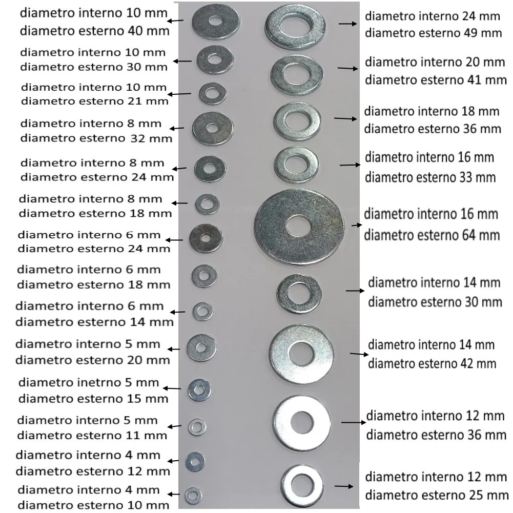 Rondelle in Ferro Zincate , disponibili in diverse misure di diametro interno ed esterno .