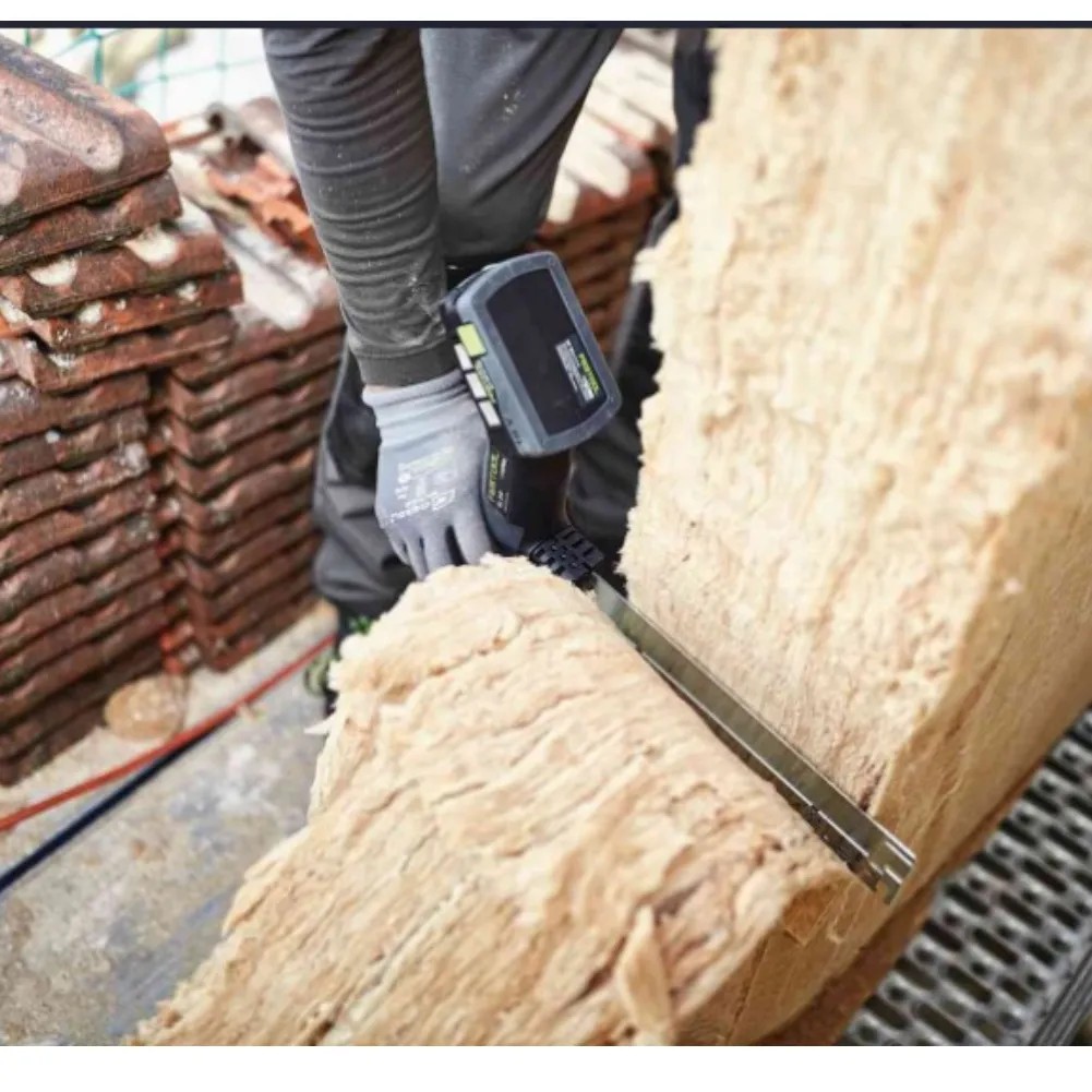 Taglio di materiali isolanti flessibili come lana di vetro, lana minerale e fibre naturali (con accessorio di taglio con lama ad affilatura ondulata)