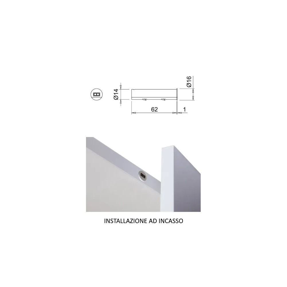 Il sensore può essere posizionato in superificie (interno vano o sotto pensile) oppure incassato (bordo retro anta).