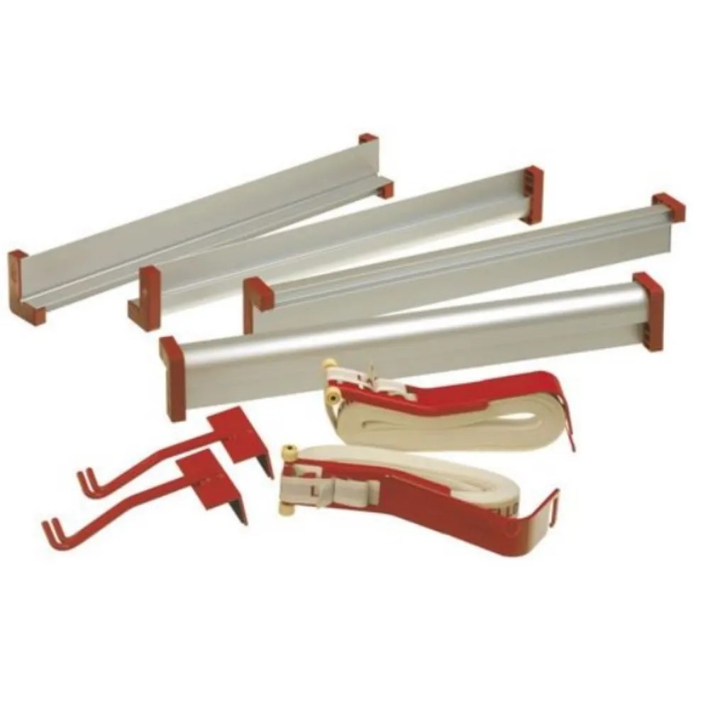 Il set di tenditori è composto da profili angolari per proteggere i bordi, cinghie di 8 mt con tenditori e una coppia di ganci trazione.