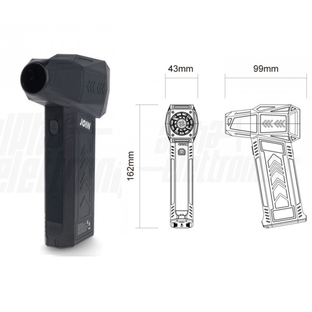 Dotato di un motore potente da 130.000 RPM, questo soffiatore garantisce un getto d'aria preciso e potente per rimuovere polvere e detriti da superfici difficili da raggiungere.
