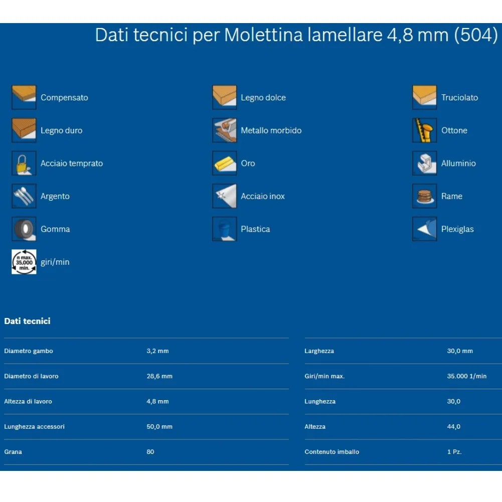 Spazzola DREMEL Abrasiva Lamellare di Diametro 28 mm , utilizzate per una perfetta levigatura di superfici piane o curvilinee nei materiali come il Legno , Gomma , Plastica , Alluminio e Metalli come L' ottone , il Rame e anche l'Acciaio Inox