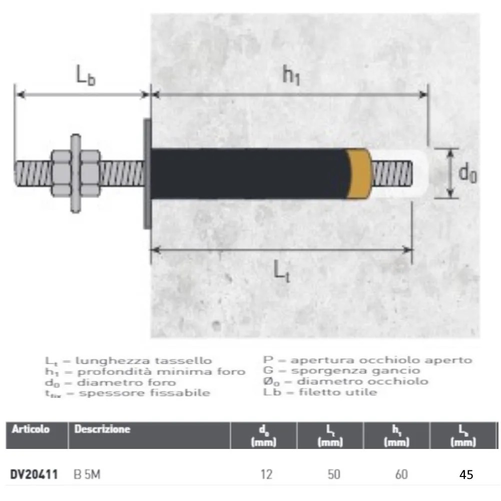 - Diametro tassello : 12 mm
