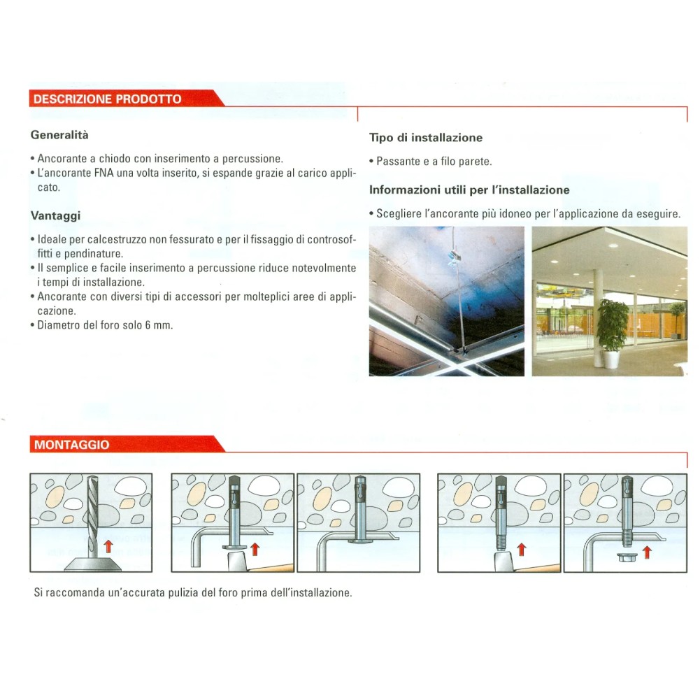 La ridotta profondità di ancoraggio riduce il rischio di contatto con i ferri di armatura.Ideale per pendinature e controsoffitti certificati CE.