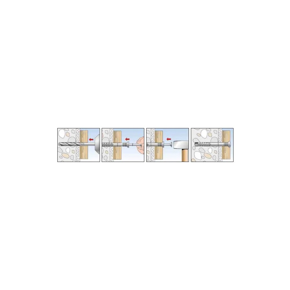 Fissaggio a percussione per l'installazione passante.Durante l'applicazione, la vite espande il tassello in 2 direzioni garantendo il corretto inserimento nel supporto.
