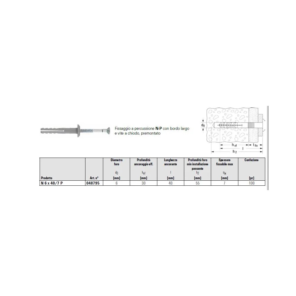 Fissaggio veloce a percussione, riduce il tempo di installazione consentendo di effettuare una serie di applicazioni in tempo ridotto.La particolare forma del tassello impedisce l'espansione prematura garantendo un installazione senza problemi.L'impronta a croce consente di svitare la vite, rimuovendo la struttura installata per successive regolazioni o smontaggio.
