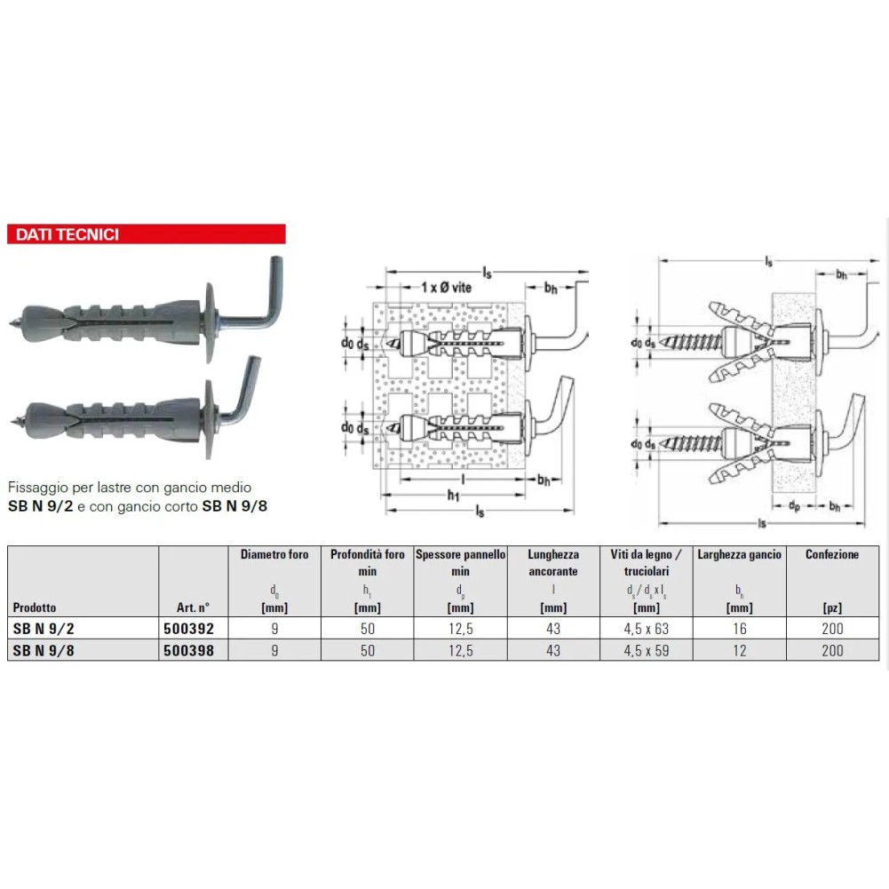 Espansione per richiamo del cono ideale per applicazioni su cartongesso e mattoni forati.