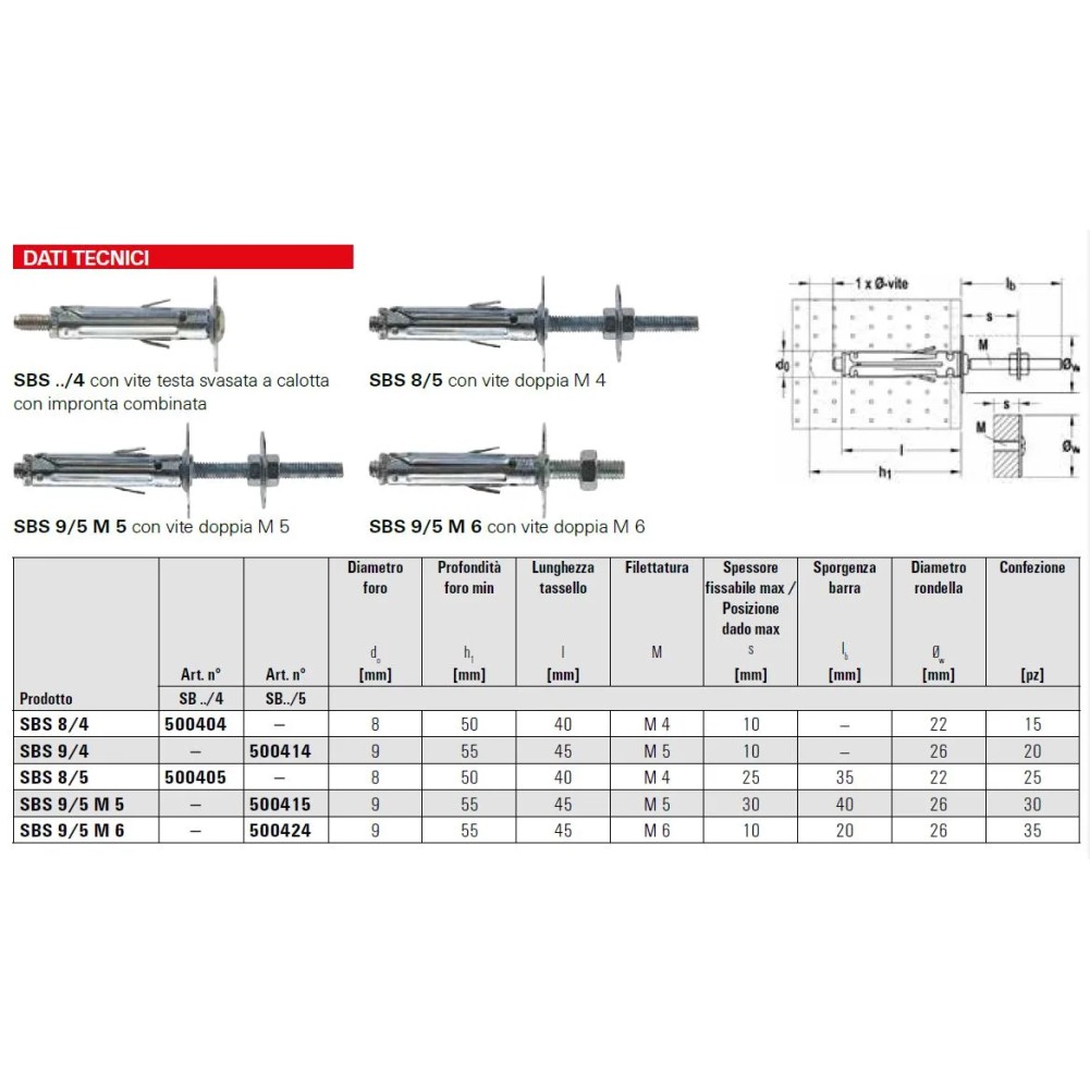 L'ampia gamma di accessori e i differenti diametri disponibili rendono il fissaggio metallico a espansione SBS idoneo per molteplici applicazioni.Il fissaggio metallico a espansione SBS è idoneo sia per installazioni passanti che non passanti.