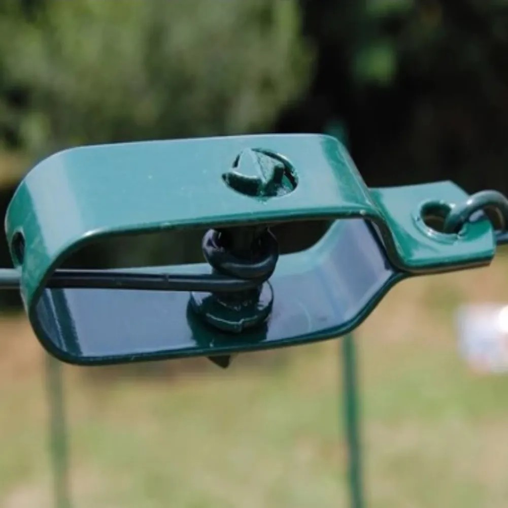 Questi tendi filo sono progettati per semplificare il processo di legatura del filo di ferro plastificato verde intorno a pali o sostegni , offrendo una tensione uniforme e stabile lungo l'intera linea .