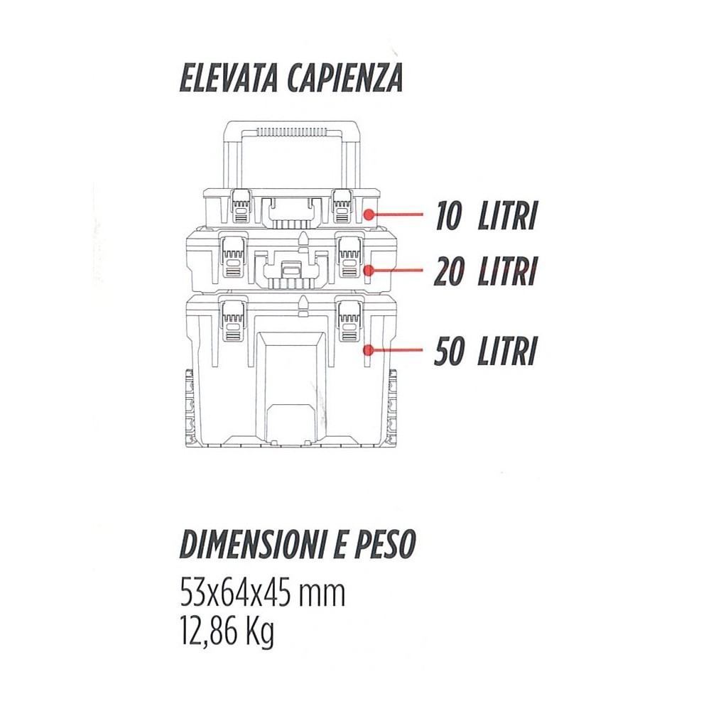 All'interno della cassetta superiore troviamo contenitori portaminuteria: 8 da 10x10 cm e 2 da 20x10 cm.