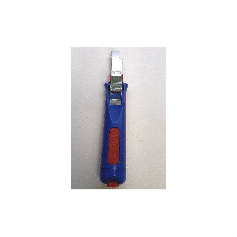 Lama in acciaio speciale temperato girevole sul proprio asse, per effettuare tagli circolari e longitudinali, regolabile tramite vite per effettuare spelature precise secondo i vari spessori di rivestimento