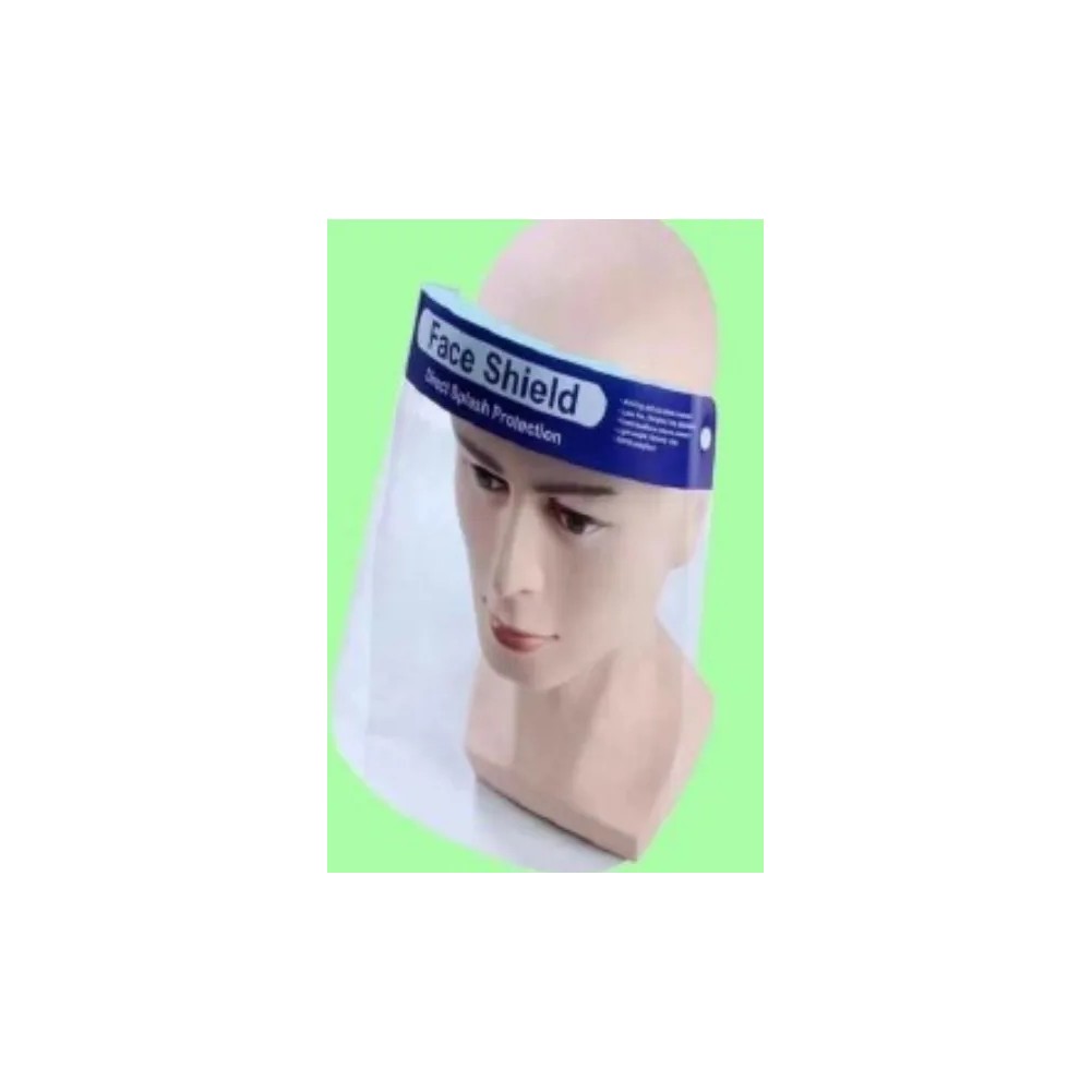 Visiera parafiato trasparente mm.220x250 con spugna frontale e cintino elastico.